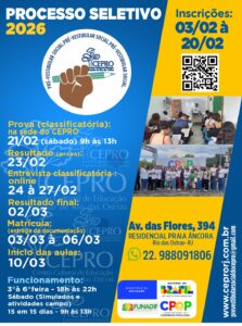 📝 Prova classificatória: 21/02 (sábado), das 9h às 13h – na sede do CEPRO