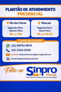 O Sindicato dos Professores de Macaé e Região segue à disposição das professoras e professores da rede privada, garantindo orientação, acolhimento e defesa dos seus direitos.