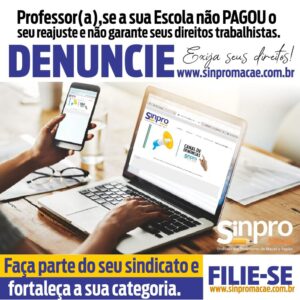 – Se a sua escola deixou de pagar o reajuste ou descumpriu outros direitos trabalhistas, você pode denunciar ao SINPRO MACAÉ E REGIÃO.