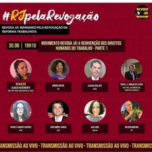 Nesta quinta-feira, 30 de junho, a advocacia e demais cidadãos têm um compromisso importante: dar o ponta pé inicial, no estado do Rio, na campanha pela revogação da reforma trabalhista – Lei 13.467/2017 -, a famigerada lei gestada e aprovada no governo Temer. Trata-se do Seminário do movimento “ Revoga Já !”, que será realizado na sede da OABRJ, das 18h às 21h, e terá a participação de todas as entidades da advocacia, do movimento sindical, universidades, DIEESE, entre outros.