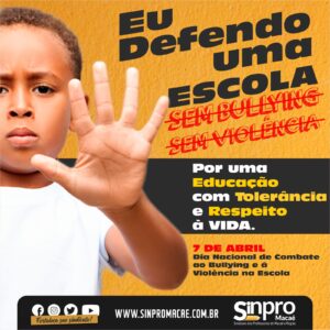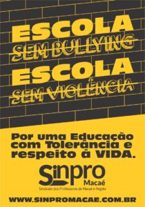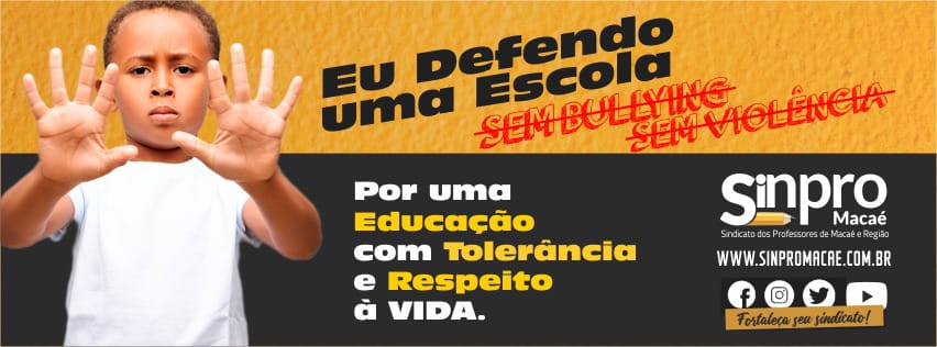 O Sindicato dos Professores de Macaé e Regiao ( Sinpro Macaé e Região) lançou, neste 7 de abril, Dia Nacional de Combate ao Bullying e à Violência na Escola, uma campanha educativa voltada à conscientização e ao enfrentamento do bullying dentro e fora do ambiente escolar.